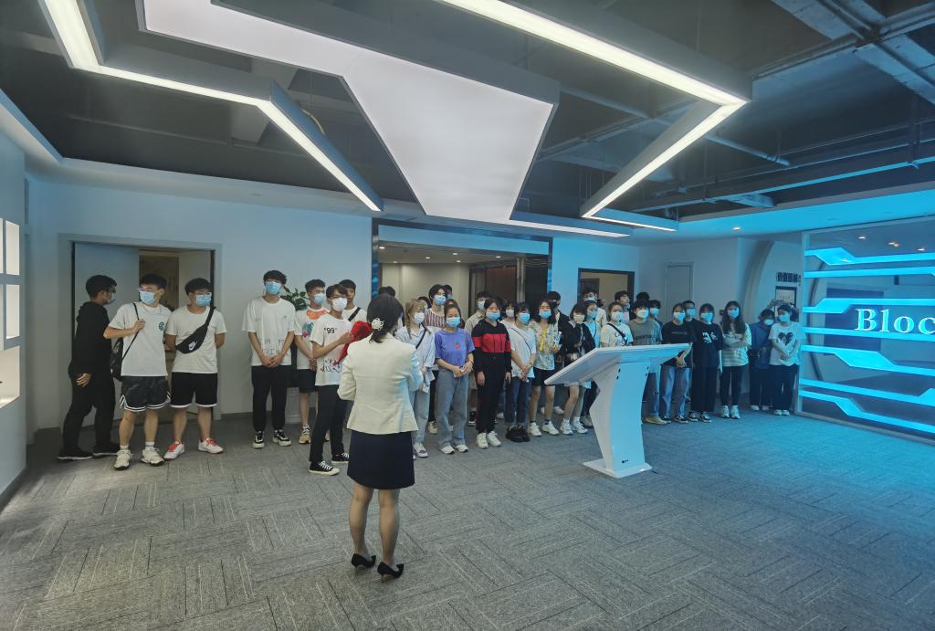 随后,师生们来到了位于九龙坡区的百行智能研究院。百行智能研究院相关负责人向同学们介绍了研究院的基本情况。区块链作为数字经济的重要基础,对于推动“产业数字化,数字产业化”发展方向具有重要作用。
