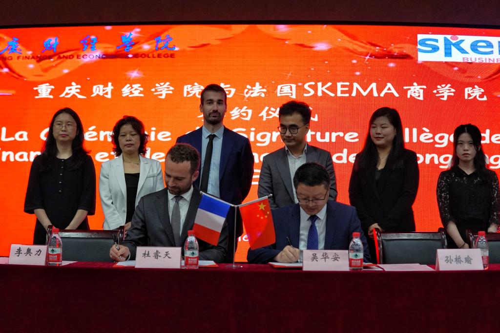 据悉,我校已先后与俄罗斯托木斯克国立大学、西班牙拉科鲁尼亚大学等达成合作后,这次与法国TOP5的SKEMA商学院达成合作,将再次提升我校国际合作与交流平台的质量。相信我校与SKEMA商学院的合作,将成为我校与法国高校合作的里程碑,为中法高等教育合作贡献力量。