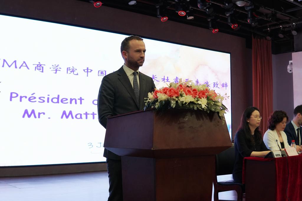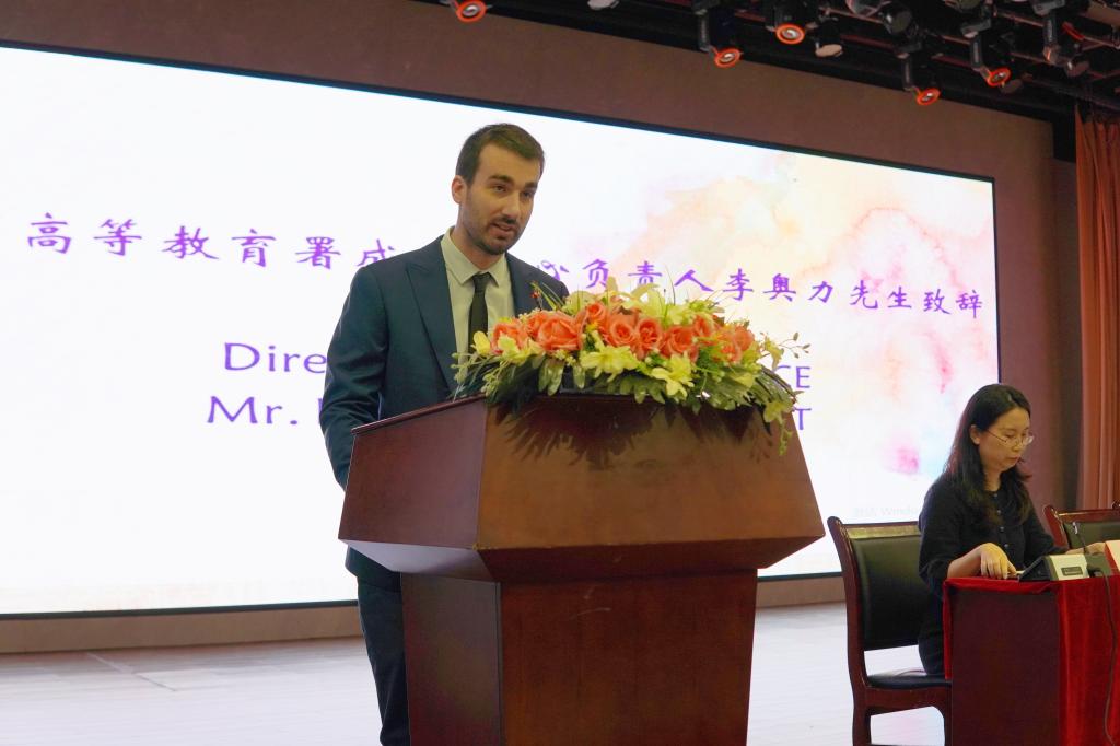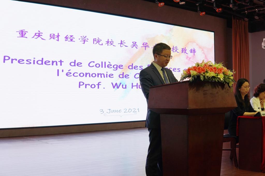 仪式上,校长吴华安教授、SKEMA商学院中国校区校长杜睿天先生及法国高等教育署成都中心负责人李奥力先生先后致辞。吴华安校长指出,重财“新财经集聚发展”和“产教融合人才培养”两大特色与SKEMA商学院“培养符合市场需求的人才”的发展理念不谋而合,两校合作将在此基础上行深至远,为中法高等教育合作添砖加瓦;杜睿天先生表示,两校未来会在学术交流和国际项目等更广泛领域拥有深入密切的合作;李奥力先生认为,在全球化进程加快和国家间相互依存的背景下,教育对外开放会让每个人变得更加丰富多彩。他指出,法国拥有丰富的文化和艺术遗产、良好的教育学术环境及众多著名的国际化企业,重财与SKEMA两校合作顺应国际化趋势,能够培养满足市场需求的国际化人才。