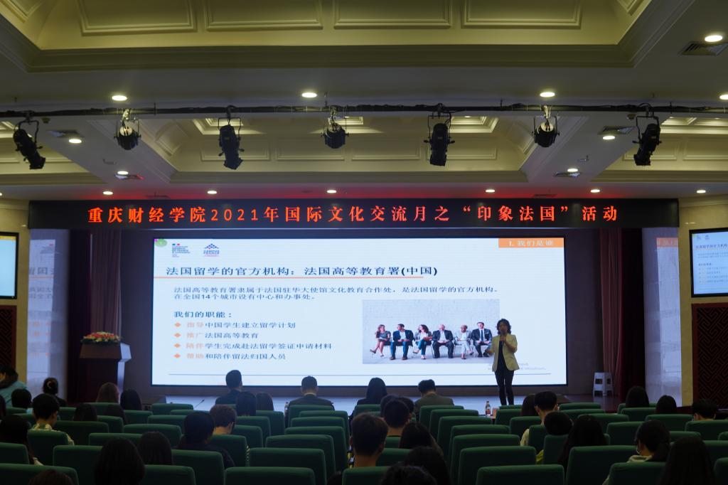 一年一度的“国际文化交流月”活动旨在营造良好的国际化校园氛围,推介优质国际教育资源,提升我校师生国际化意识。此次“印象法国”活动主要由“领略法国文化,走近法国高校”和“感受法国美食,品鉴法国红酒”组成。法国高等教育署重庆办事处负责人陈佳、法国安卡创投亚洲区总经理孙桥瑜、法国SKEMA商学院校际合作与招生录取经理杨娟分别就法国高等教育、法国创新与创业理念及留学SKEMA等主题进行了分享,为现场师生呈现了一场法国教育与文化的盛宴。
