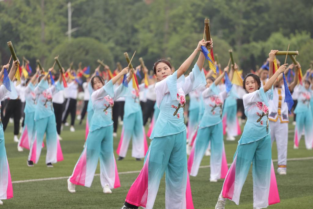 为庆祝中国共产党成立100周年,深入学习贯彻习近平总书记在党史学习教育动员大会及全国教育大会上的重要讲话精神。推动党史学习教育走深走实,发挥学校美育立德树人重要载体作用,努力营造良好的美育文化氛围。我校于6月10日中午在学校足球场举行了第一届美育文化节开幕式暨梆鼓舞大赛。