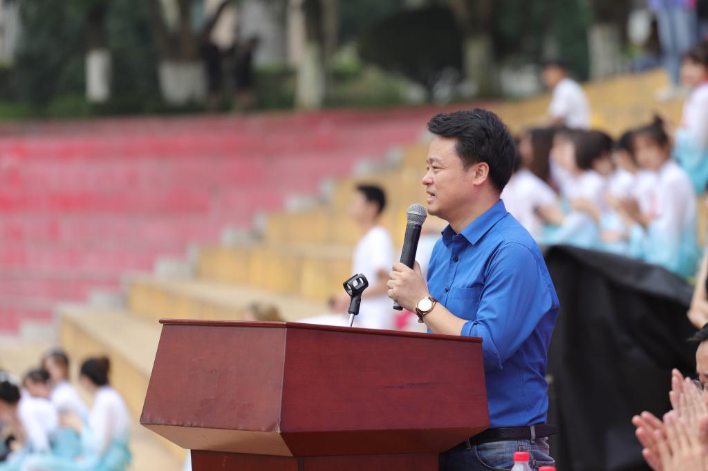 巴南区文旅委副主任邓涛发表讲话,希望通过美育文化节吸引更多的老师、同学对非遗文化的关注和喜爱,也祝愿靠谱的电子游戏平台官网的美育工作更上层楼,共同推进中华优秀传统文化的薪火相传。