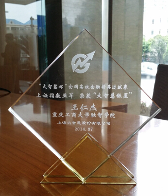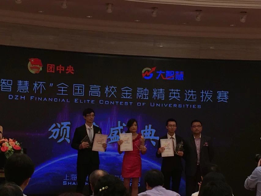 “大智慧杯”全国高校金融精英选拔赛从传统的股票模拟大赛,转换为以“简易期权、上证指数、模拟白银”为投资标的的新视角。加强了国内各高校创新投资交流的渠道,对深化人才培养、完善科学研究、增强业界合作、提升实习就业的良好氛围具有积极的促进作用。其权威性、专业性得到了社会各界的认可。本次大赛历时一个月,吸引了近500所院校,5万人次师生和近600支团队参与其中。参赛学校不乏985、211类重点大学,如清华大学、北京大学、上海交通大学、同济大学、浙江大学、厦门大学、哈尔滨工业大学、吉林大学、中山大学等等。经过初赛、复赛等环节的激烈竞争,最终决出上证指数、模拟白银、简易期权个人单项前三名;上证指数、模拟白银、简易期权最佳学校前十名;以及最佳组织奖等多个奖项。经过紧张的角逐,我院金融系王仁杰同学凭借实力获得上证指数全国第二名的好成绩,而我院凭借扎实的专业知识和良好的组织协作力赢得了上证指数“卓越学校奖”。