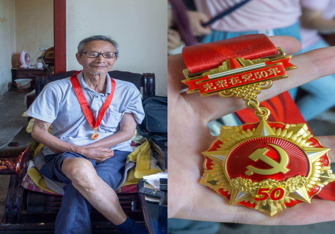 74日下午,团队成员在大井村支部书记寇其平的带领下带着大米粮油慰问了当地50年党龄的老党员和抗战老兵,听他们讲党的历史,学习他们为国家不怕牺牲的精神,为人民群众办实事的先进事迹。