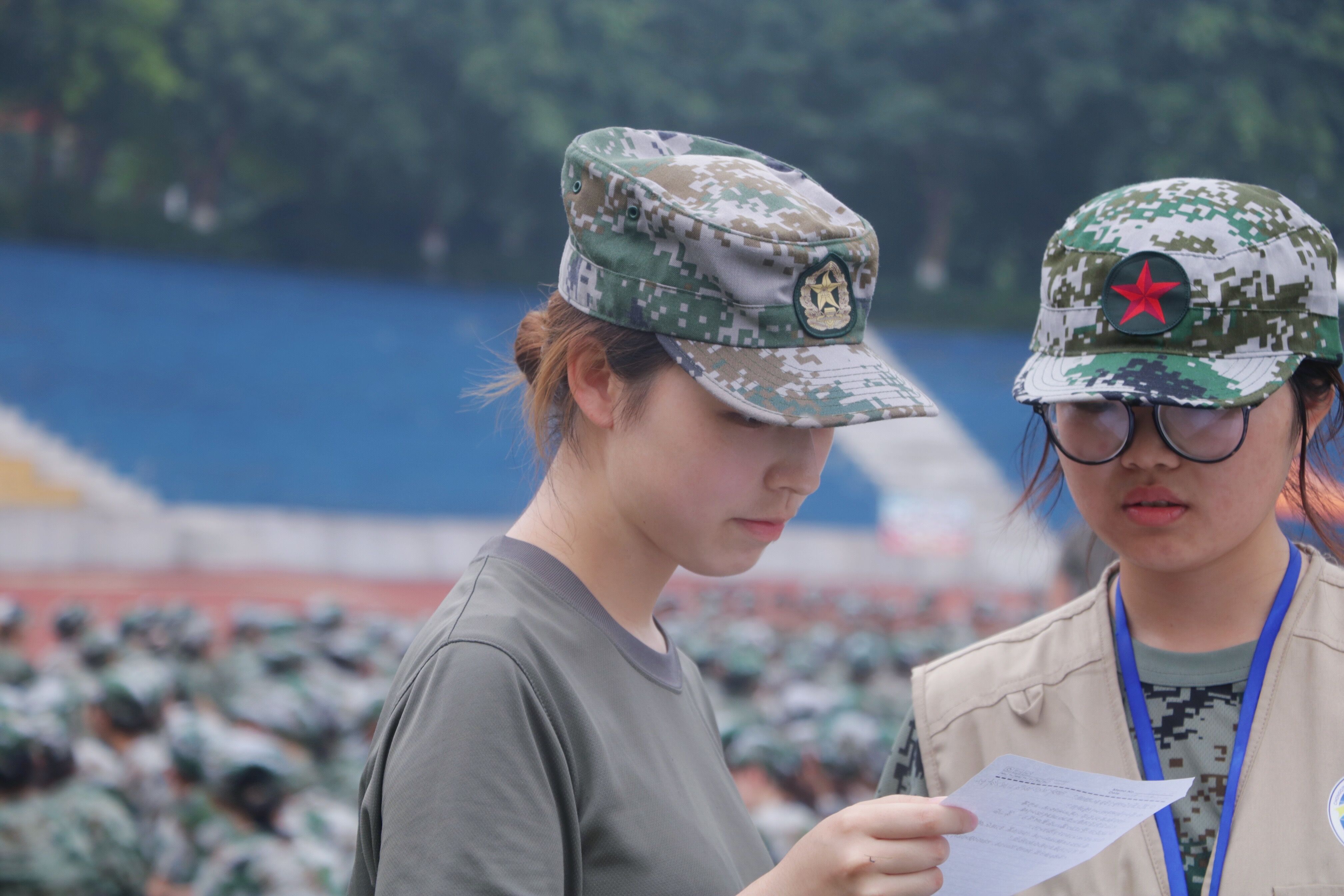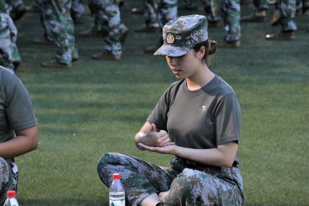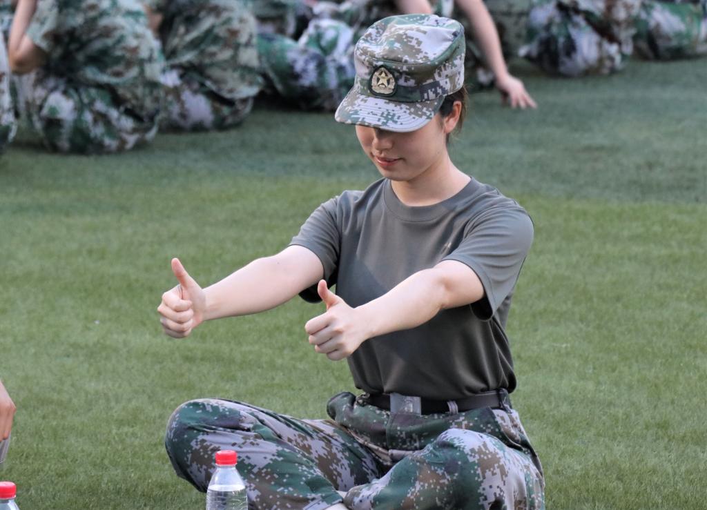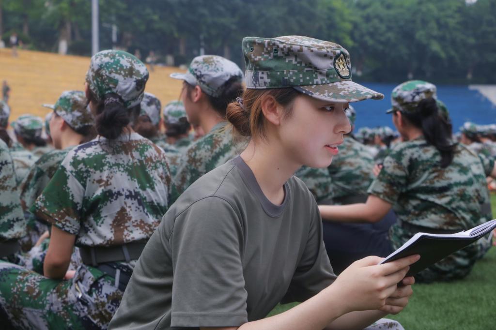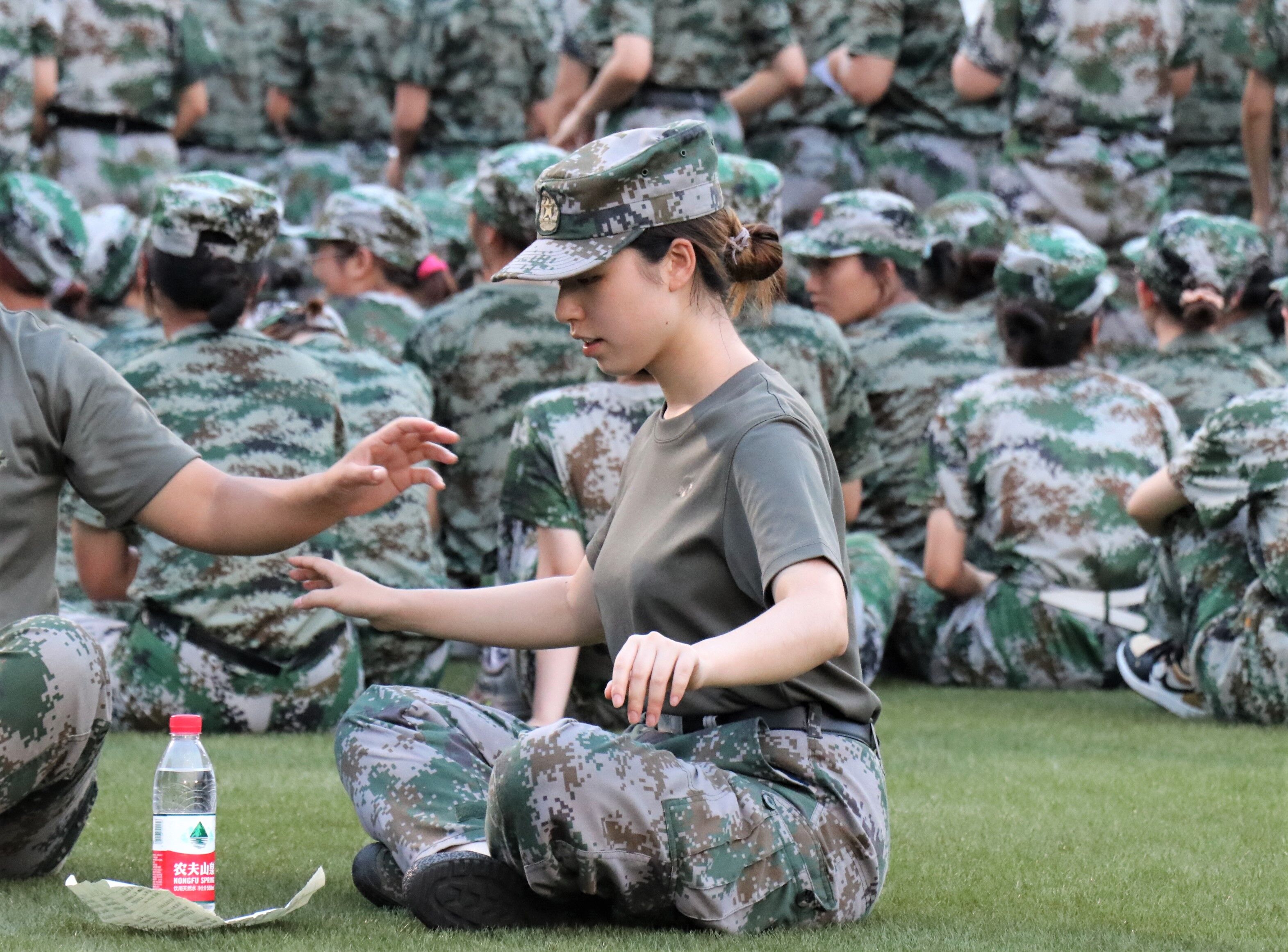 来自中国人民解放军陆军某部的八连的女教官李佩洳,先介绍了本次军训开展的训练项目,“在初期先进行站军姿、停止间转法、正步等基础训练,之后再开始军体拳、打靶的进阶型训练。”在谈到对重财学子的初印象时,女连长评价到他们是一群心里有火、眼里有光的少年。“第一眼看到这群学员时,以为他们只是清秀白嫩的‘小鲜肉’,但在日夜高强度的训练中,从动作稚嫩变得日渐坚毅,蜕茧成蝶,我看见了更优秀的他们。”