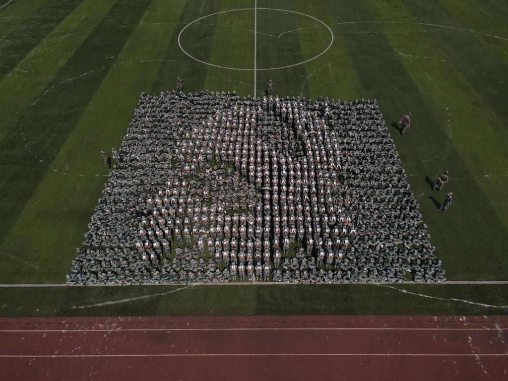 队列操方阵变换着阵型,展现出“和平鸽”、“党徽”、“国旗”、“中国”、“共产党”、“财经学院”等字样,用人墙摆出最动人的心声,用双手演绎对祖国与学校的敬意与热爱。“目光所至皆为华夏,五星闪耀皆为信仰。”她们用青春和热血唱响主旋律,为党和祖国诚挚献礼。