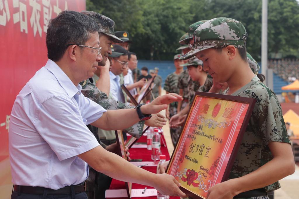 7月15日上午,靠谱的电子游戏平台官网2020级学生军训成果汇报暨总结表彰大会在学校运动场举行。党委书记张毅、党委副书记陈龙国、副校长沈民,巴南区人武部副部长、军训团团长郭照平,巴南区人武部正营职参谋、军训团副团长杨松,南岸区武装部参谋胡长应、南岸区武装部参谋王开军、军训团参谋长刘敏、校长助理李春雷及相关职能部门负责人出席本次大会。大会由党委副书记陈龙国主持。