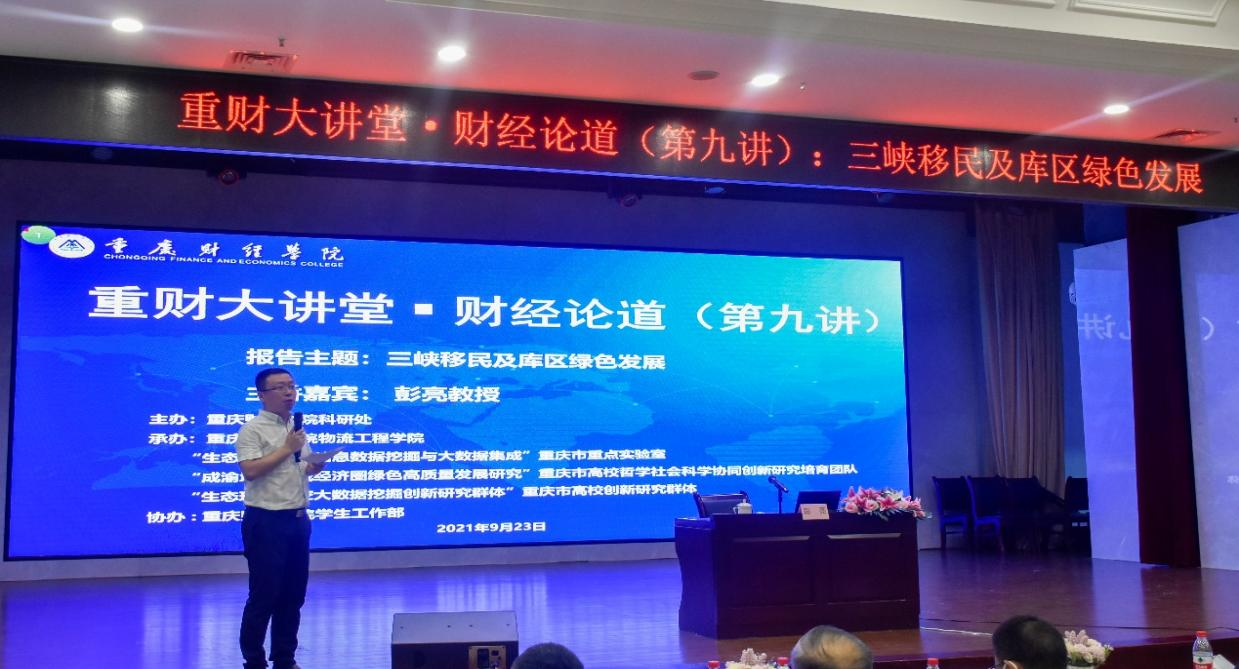 9月23日下午14:30,重财大讲堂·财经论道(第九讲)“三峡移民及库区绿色发展”学术讲座在我校学术报告厅举行。原重庆市水利局一级巡视员彭亮教授担任本次讲座的主讲嘉宾,校党委副书记陈龙国、校长助理兼科研处处长张立及全校200余名师生参加了此次讲座,讲座由张立助理主持。