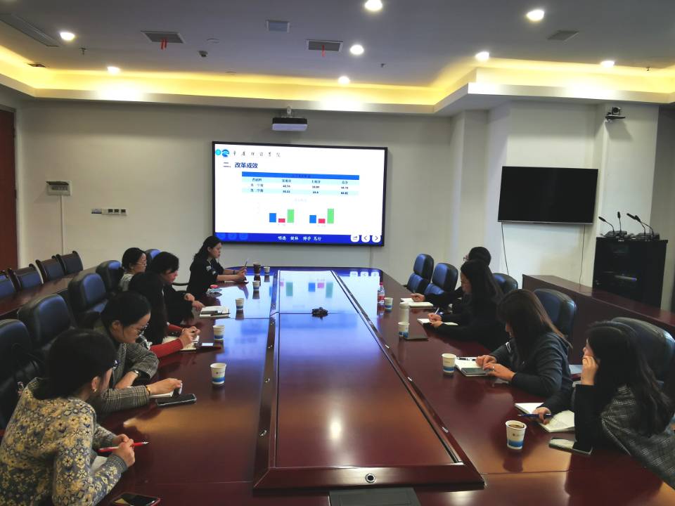 会议开始,国际商学院院长刘莉向到会领导介绍了大学英语课程组建设基本情况、课程组师资构成情况及英语课程改革后工作进展。随后王梦莎从教学对象,课程设置,改革成效,存着问题及解决方案等方面进行了工作汇报。