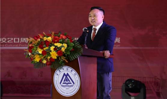 新鸥鹏集团副董事长、学校理事长杜积西博士代表集团全体员工对靠谱的电子游戏平台官网建校20周年表示祝贺,从投资建设方的角度向与会代表分享了集团自学校建校以来的艰辛探索与根植教育的情怀,用历史与现代的双重视角重新解读“财经”的涵义,并对学校未来规划提出了发展要求与殷切希望。