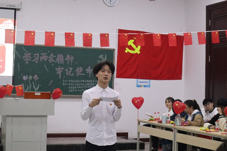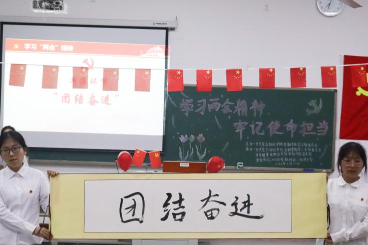 为进一步贯彻落实全国两会精神,引导广大学生进一步巩固信念之基、牢记初心使命,向第二个百年奋斗目标、向着实现中华民族伟大复兴的中国梦奋勇前进,学校金融学院学生党支部联合2021级金融科技二班团支部于3月30日在教学楼1613教室开展了“学习两会精神,牢记使命担当”主题党日活动。