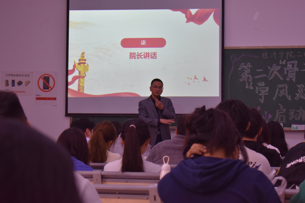 随后,经济学院院长李红平在学风建设启动仪式上做了交流。李红平院长强调了学风建设的重要性,鼓励同学们继承和发扬“团结和谐,积极进取,追求卓越”的院风精神,建设团结友爱、朝气蓬勃、积极向上的优秀集体。