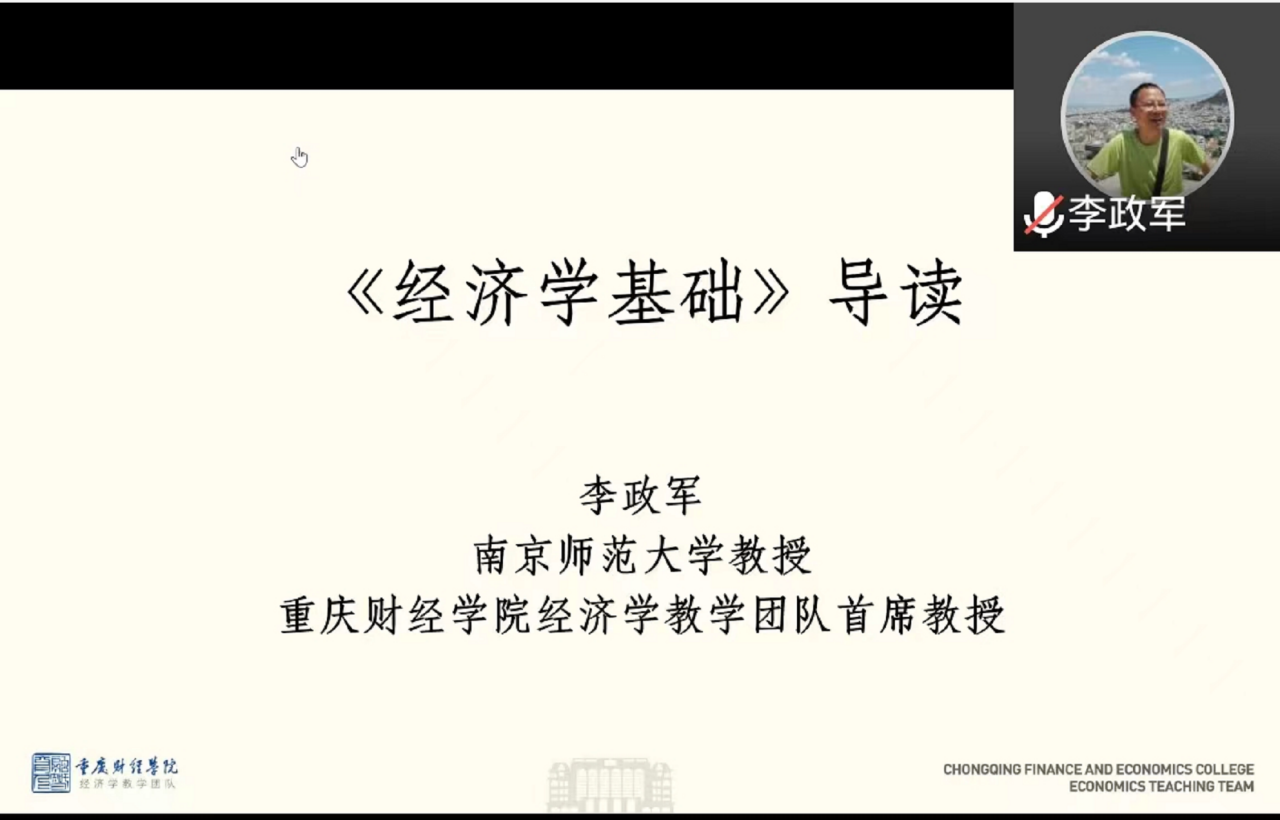 为响应习近平总书记提倡多读书、建设书香社会的号召,2022年5月20日14:30-16:30,由我校经济学院、图书馆联合举办了“书香抗疫 名师为伴|经济学名师团带你读”的第十二期云端读书分享会活动。活动旨在为全校学生搭建读书平台,通过我校名师团队领读,激发学生的读书热情,营造积极向上、清新高雅的文化氛围,进一步提升学生利用专业知识分析问题和解决问题的能力。此次分享会由我校经济学教学团队首席教授李政军作为领读人领读其著作《经济学基础》,经济学院周映伶老师主持,全校学生自愿报名参加。