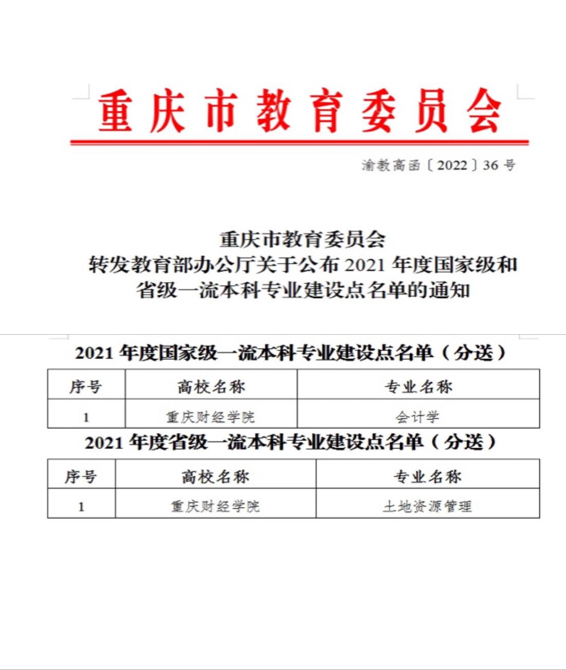 近日,教育部办公厅印发了《关于公布2021年度国家级和省级一流本科专业建设点名单的通知》(教高厅函〔2022〕14号),我校会计学专业获批国家“双万计划”国家级一流本科专业建设点。同时,土地资源管理专业获批省级一流本科专业建设点。