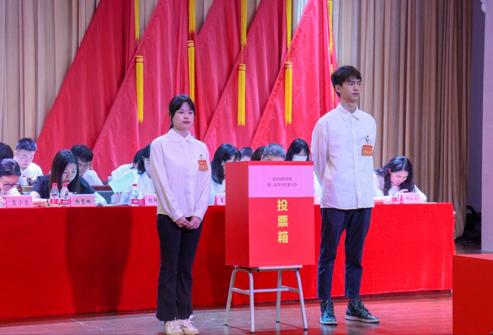 在选举大会上,通过了本次大会换届选举办法。全体学代表依次进行投票。大会选举产生卢熙、王紫仪等17名同学为我校新一届学生代表大会常任代表,邓茜彤、牟娟等5名同学为我校新一届学生会主席团成员。