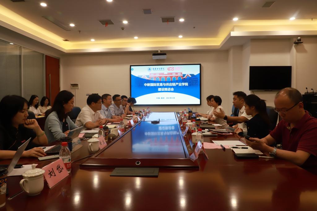 为继续深化产教融合、加快项目建设进度。2022年6月24日,我校“中新国际贸易与供应链产业学院”(以下简称:中新产业学院)建设推进会顺利举行。重庆市中新示范项目管理局交通物流与航空产业项目推进部、新加坡企业发展局重庆办事处、中新互联互通(重庆)物流发展有限公司、新鸥鹏集团专家委员会、靠谱的电子游戏官网有关负责人参加推进会。会议由校长助理崔中山主持。