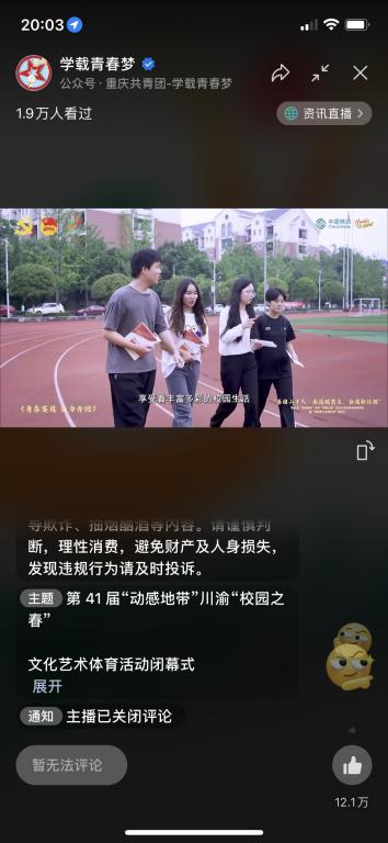 据悉,此次评选活动由共青团重庆市委、共青团四川省委、重庆市学生联合会、四川省学生联合会联合开展,围绕坚定理想信念、培育高尚品格、练就过硬本领、勇于创新创造、矢志艰苦奋斗5个类别,共选树200名“双城青才校园先锋”个人(川渝两地分别选树100名)。在本次评选中,其中4个类别我校均有师生获奖,其中刘婷婷同学作为“矢志艰苦奋斗先锋”唯一代表受邀拍摄记录宣传片,在网络直播中播放。