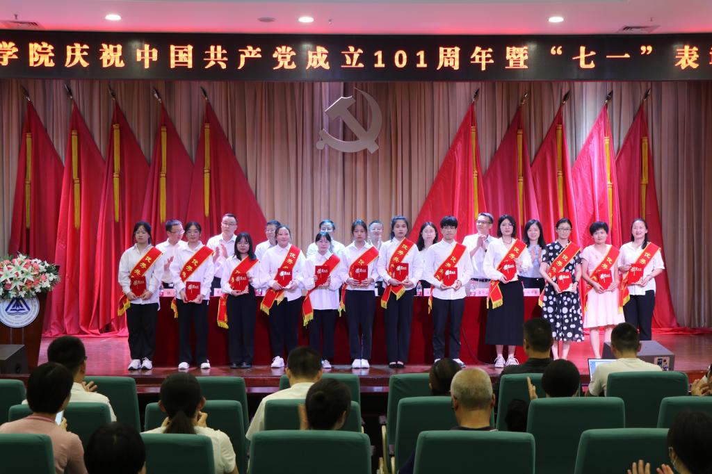 6月30日下午,学校在学术报告厅隆重召开庆祝中国共产党成立101周年暨“七一”表彰大会。全体党委委员、校领导,全体中层干部,受到表彰的先进集体和个人,教职工党员、学生党员代表参加会议。会议由党委副书记房朝君主持。
