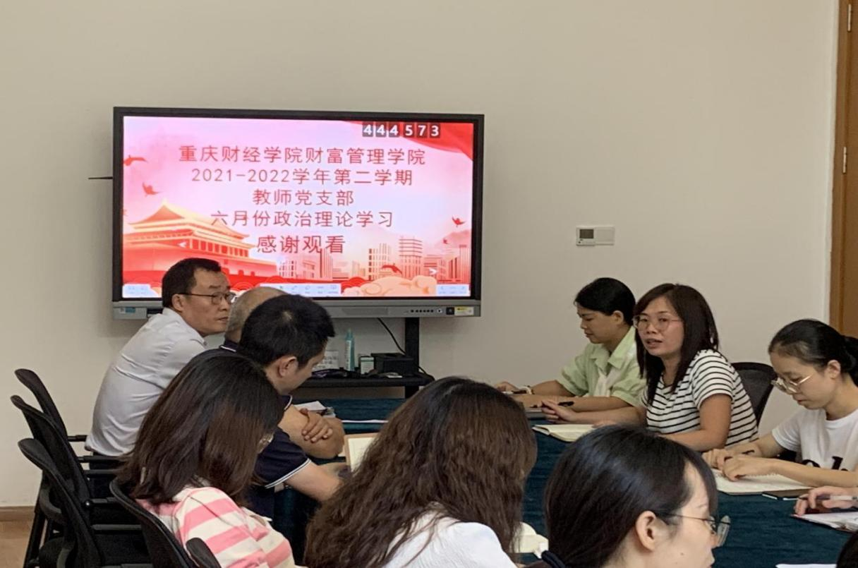 此次政治理论学习会内容丰富,参会人员热情饱满,学习后党员教师们讨论充分。财富管理学院将在此次学习的基础上,带动学院教师深刻领会中国共产党重庆市第六次代表大会精神,使其成为指导科学研究、课堂教学、学生培养的重要内容。