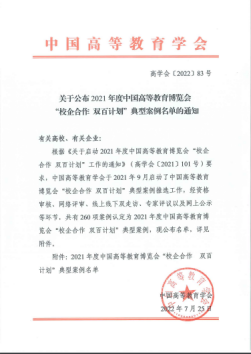 近日,中国高等教育学会公布了2021年度中国高等教育博览会“校企合作 双百计划”典型案例名单,我校《基于“一院三制五融”的校企融合共生长效机制探索》案例入选。