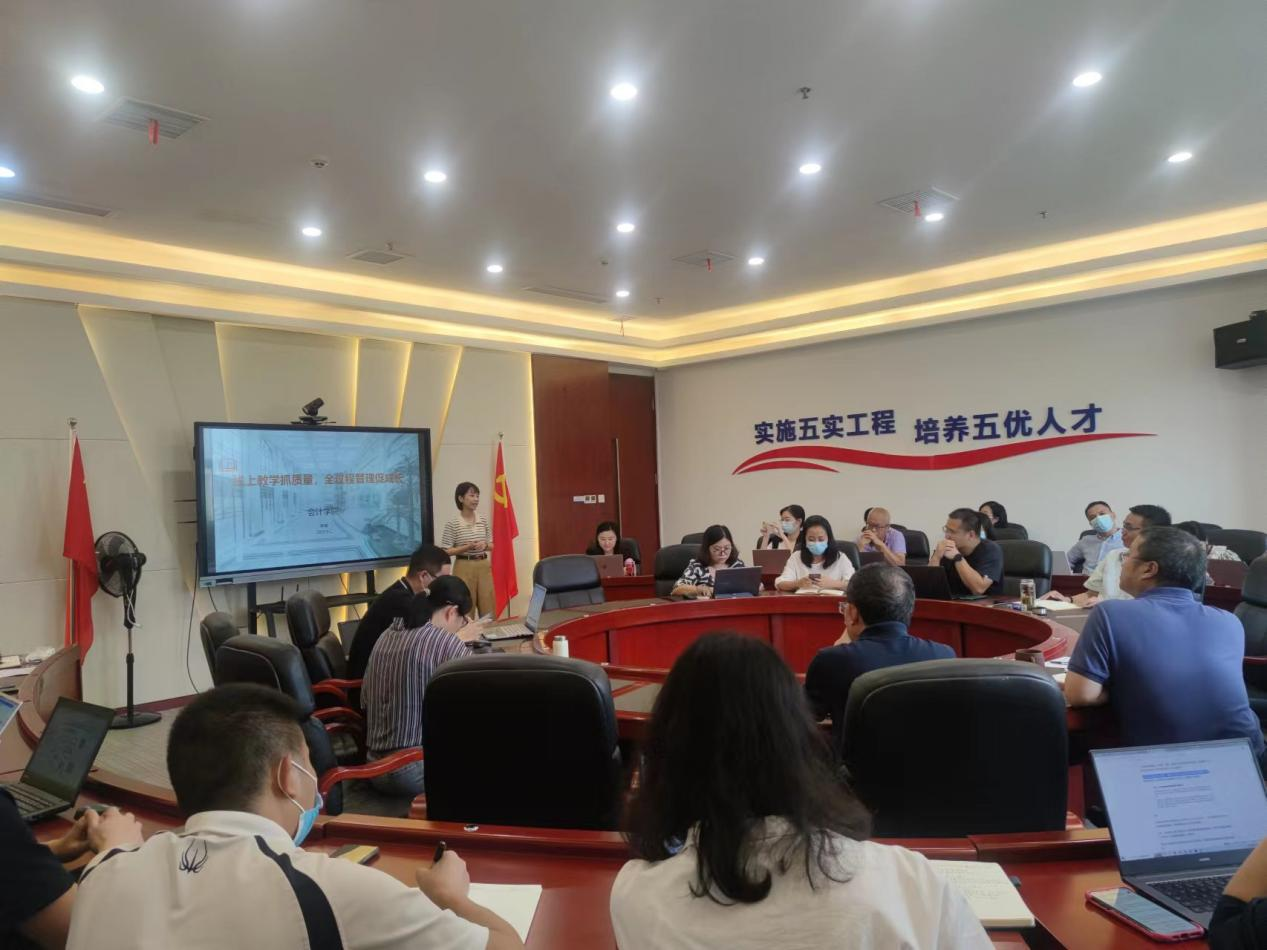 随后,评建办主任滕学英对线上教学的督导事宜进行了工作汇报,强调各学院要强化新老师的线上授课能力。会计学院副院长李倩、财富管理学院院长贺高翔就本学院线上教学准备情况分别作了经验分享。