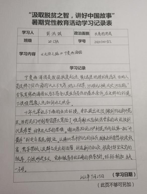 红色耀中华,风骨传后人。通过暑期系列主题教育活动的开展,金融学院党总支党支部学生党员们更加意气风发,传承红色基因,发扬脱贫攻坚精神,勇担新时代青年的责任与担当。每一名年轻党员成长路上都应有自己的“风向标”,且乘骐骥以驰骋兮,来吾道夫先路!