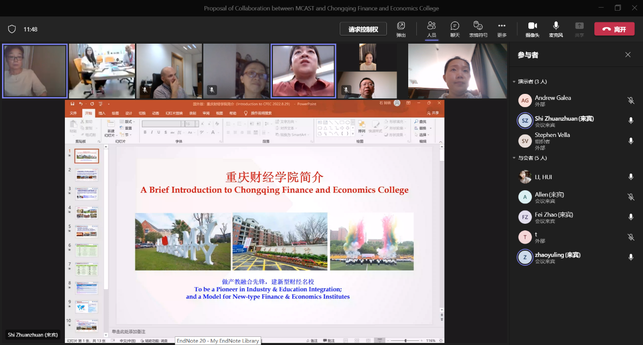 近年来,我校不断拓展和对接海外优质高等教育资源,致力于提升国际化办学水平。马耳他艺术科技学院(Malta College of Arts, Science & Technology,简称MCAST)作为马耳他第二大的国立高等教育机构,办学规模仅次于马耳他大学。此次与马耳他艺术科技学院开展的“云端”交流活动是我校扩大“一带一路”倡议背景下海外姊妹学校“朋友圈”的又一次努力。
