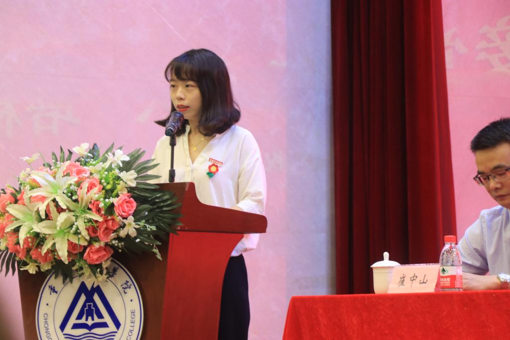 优秀教师代表殷骆骏楠及优秀辅导员代表蔡婷上台发言,谈到了自己的成长和体会,也表明了在今后工作中的决心,继续秉承“学高为师,德高为范”的精神信条,爱岗敬业,无私奉献,用智慧和热情点燃学生,用勤奋和汗水浇灌学生,为教育事业做出自己的贡献。优秀教育工作者代表夏文瑞谈到,幸福是奋斗出来的,作为教育工作者,我们工作在今朝,建设着美好的明天;工作在课堂,成就在大地的四面八方。一番耕耘之后,我们收获的将不仅仅是硕果累累!