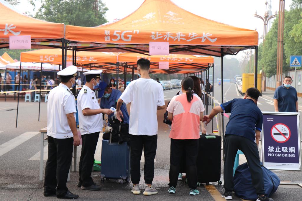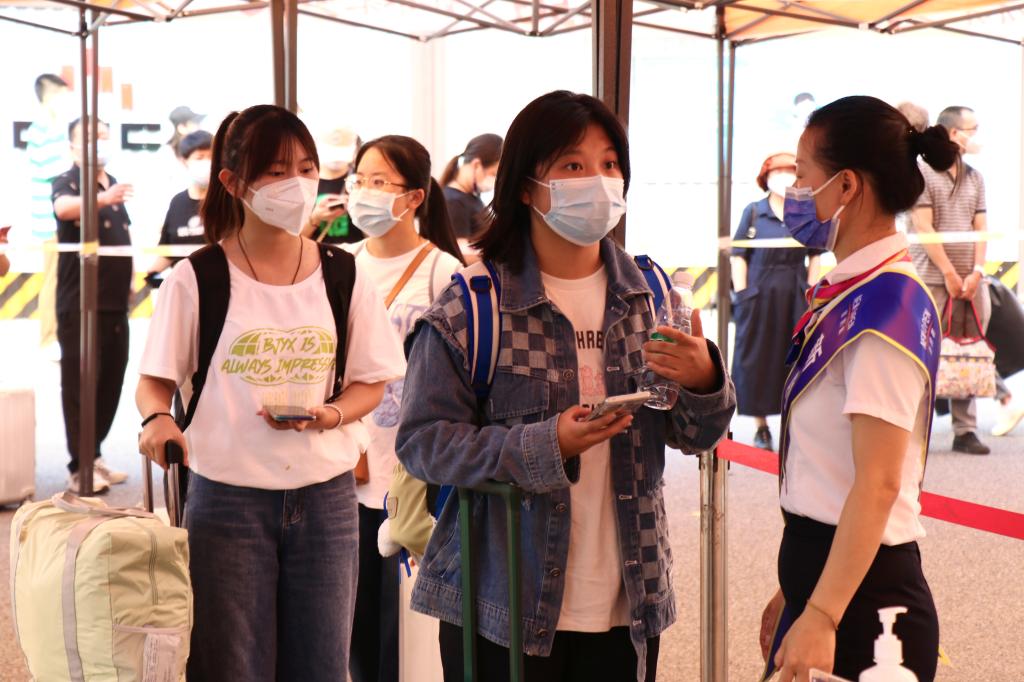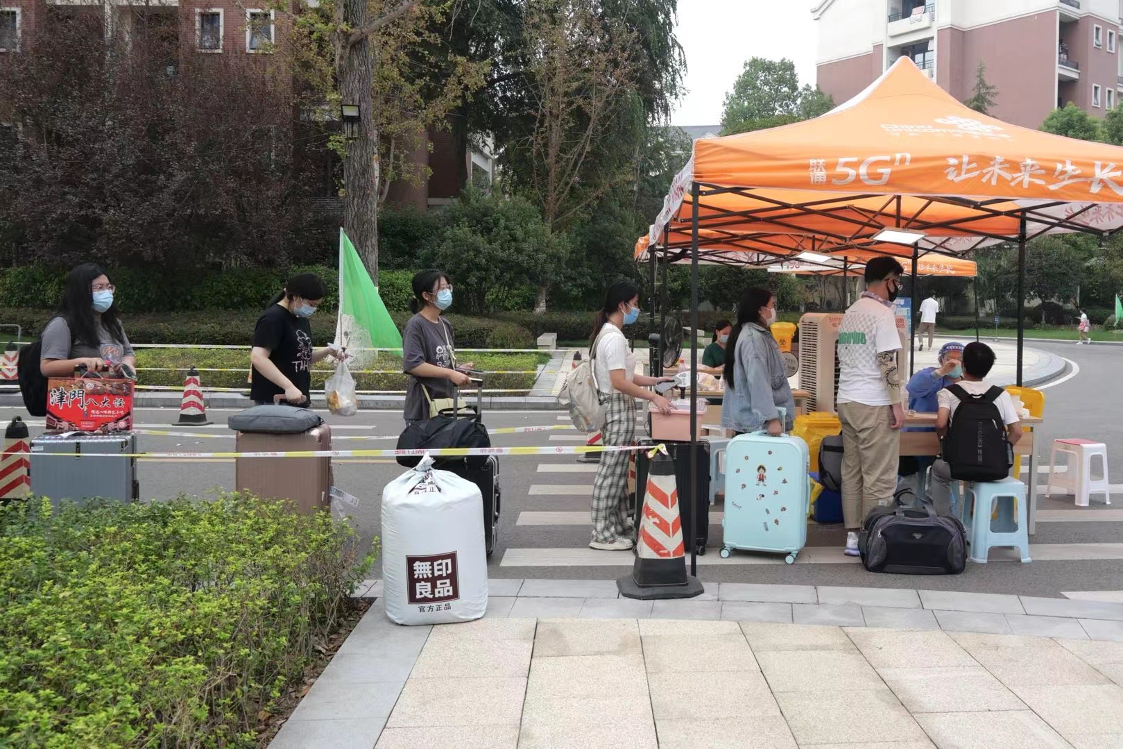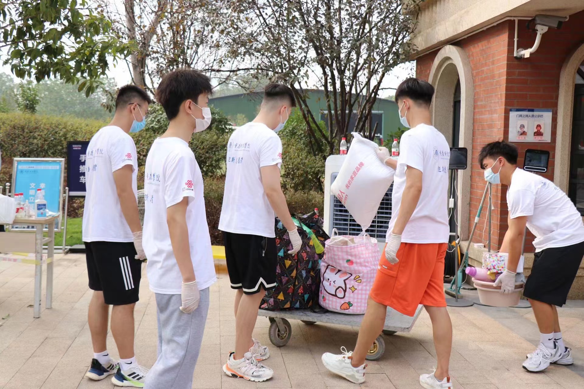 在疫情尚未稳定的大环境下,学校周密计划,精心部署,汇聚多方力量,保障学生返校工作平稳有序。教师党员志愿者、青年学生志愿者积极投入其中,核酸扫码、一卡通发放、行李搬运……勇担责任与使命,形成一道美丽的风景线。