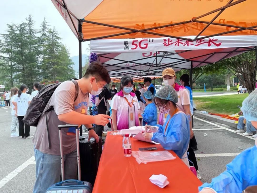 教化除尘开眼界,志愿服务暖人心。白T恤、黄牌子…志愿者们穿梭在火车站、报到点、宿舍,在校园内外,成为了一道靓丽的风景线。行李消杀、二码查验、核酸证明、扫码进校、核酸检测,志愿者们积极行动,校园防疫不松懈;帮助新生登记信息、搬运行李,并为新生答疑解惑,志愿者们热情服务,新生到校很舒心,另外,还有辅导员、宿管阿姨的亲切迎接……让返校归来的学子们感受到重财大家庭的温暖。