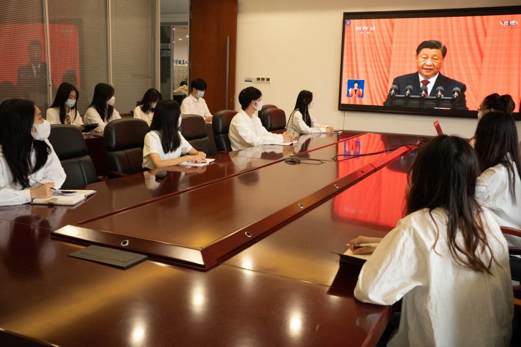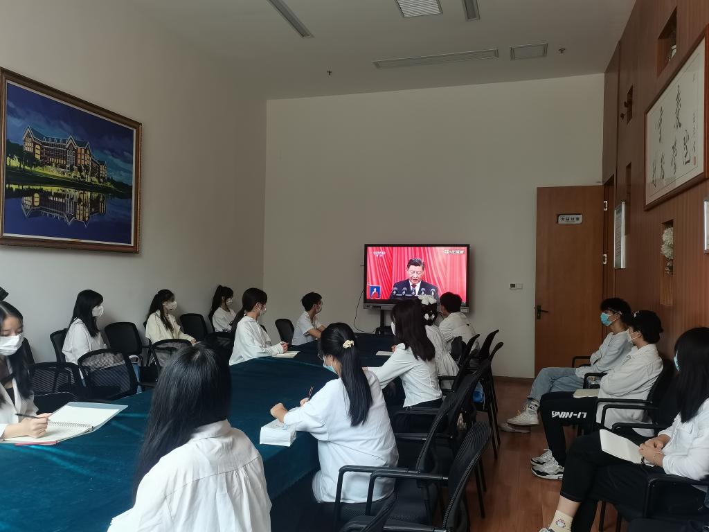 在收看报告的过程中,各分会场秩序井然。与会同志都聚精会神,认真记录了习总书记报告重点。大家密切关注会议进程,了解会议事项,在聆听习总书记报告的同时,深入思考相关内容。大家一致认为,党的二十大,是在我国在迈上全面建设社会主义现代化国家新征程、向第二个百年奋斗目标进军的关键时刻召开的一次十分重要的大会,是全党、全国各族人民政治生活中的一件大事。大家纷纷表示,将牢记总书记的嘱托,坚定不移听党话、跟党走,立志做有理想、敢担当、能吃苦、肯奋斗的重财青年,让青春在全面建设社会主义现代化国家的火热实践中绽放绚丽之花。