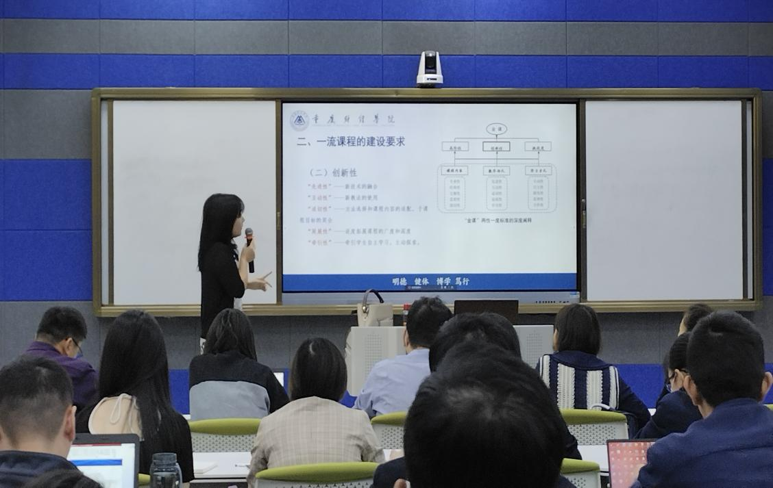 黄兰副教授以“一流课程建设的几点思考”为主题展开此次讲座,从“双一流的背景”入手,对一流课程建设的“两性一度”要求进行了解读,提出了“金课”建设的路径,并从课程评审者和管理者的角度总结了一流课程申报和验收的要点,最后以《物业管理法规》课程为实例详细分享课程设计和建设的成功经验。