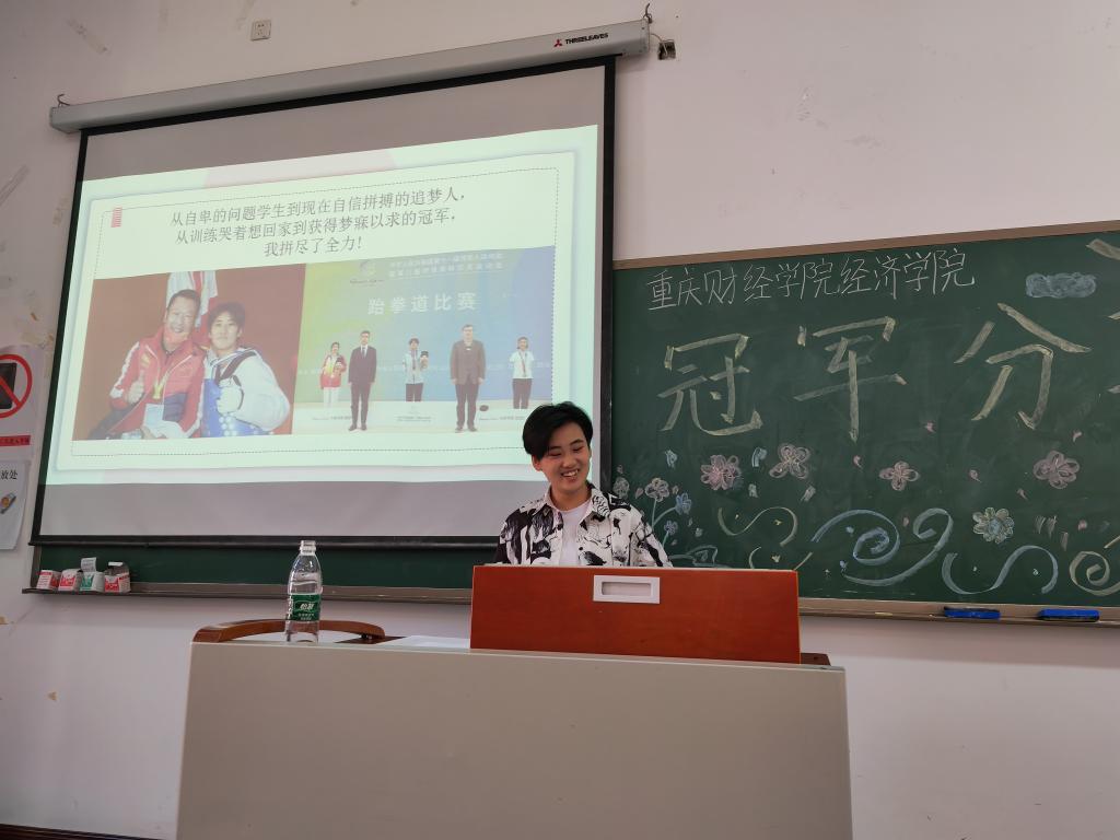 为进一步加强理想信念教育,引导同学们学习全国第11届残奥会暨第8届残奥会跆拳道冠军刘婷婷的拼搏精神。10月20日中午,经济学院“榜样的力量”冠军事迹分享会在教学楼1420举行,学院2022级新生近150人参加会议。会议由学院学生党支部书记杨超主持。