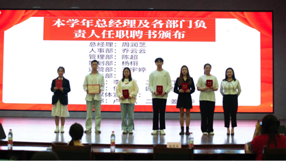 会上为上学年获奖组长进行了颁奖,也对本学年各部门负责人颁布了聘书。