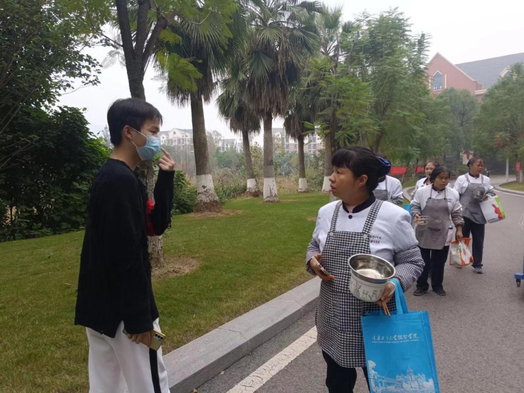 疫情在多地频发,防疫工作刻不容缓,但就是在这样一个严峻的情况下,我校退役复学大学生临危而上,火速集结,抗击疫情,共同守护校园师生们的安全与健康。他们因时制宜,根据巴南区以及学校防控政策时时调整管理制度,并对各项工作进行细化、落实。每天从早上六点到晚上一点,他们坚守在自己的岗位,高强度的工作不曾让他们停下脚步。在巡逻期间,同学们也积极配合工作,充当前哨角色,为志愿者们提供关于违反纪律学生的信息和线索,帮助他们解决问题。