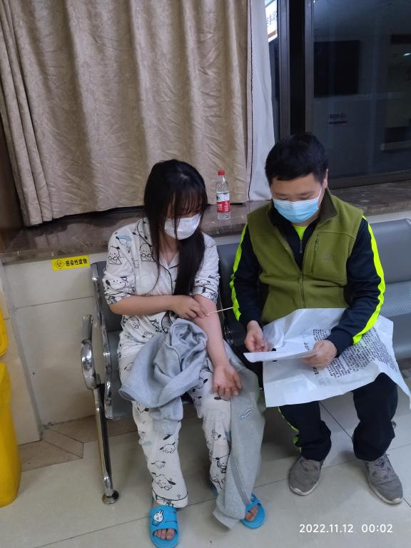 左智科老师驾车将生病学生送达医院后,与一同前往的病患室友王梦婷同学贴心陪护,帮助生病学生完成了急诊各项检查、诊治活动,所幸病患并无大碍。完成诊治后,虽已经是凌晨1点,大家都略显疲惫,但看到生病学生转危为安,负责陪同就医的老师、同学终于松了一口气,平安地将其护送回校。