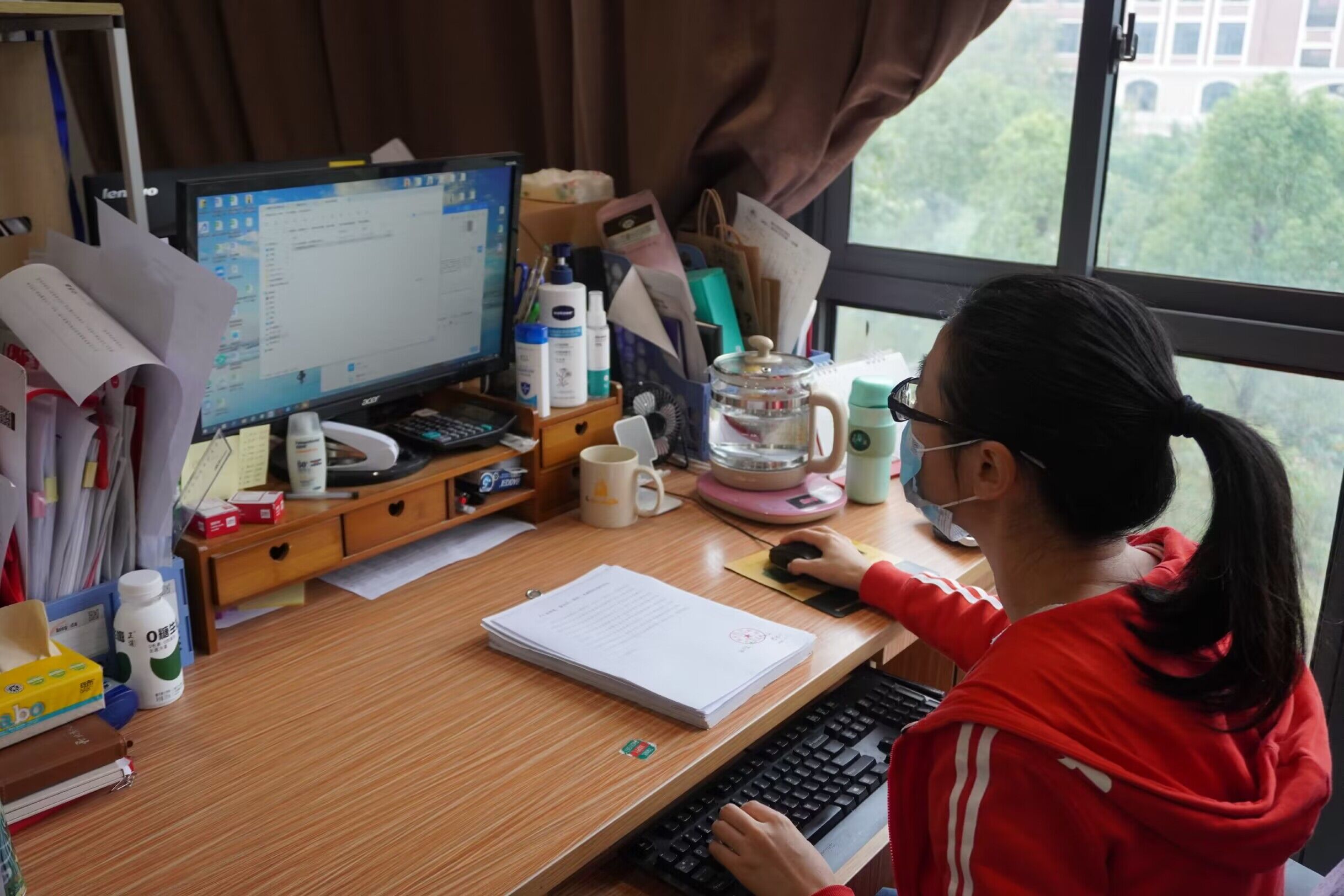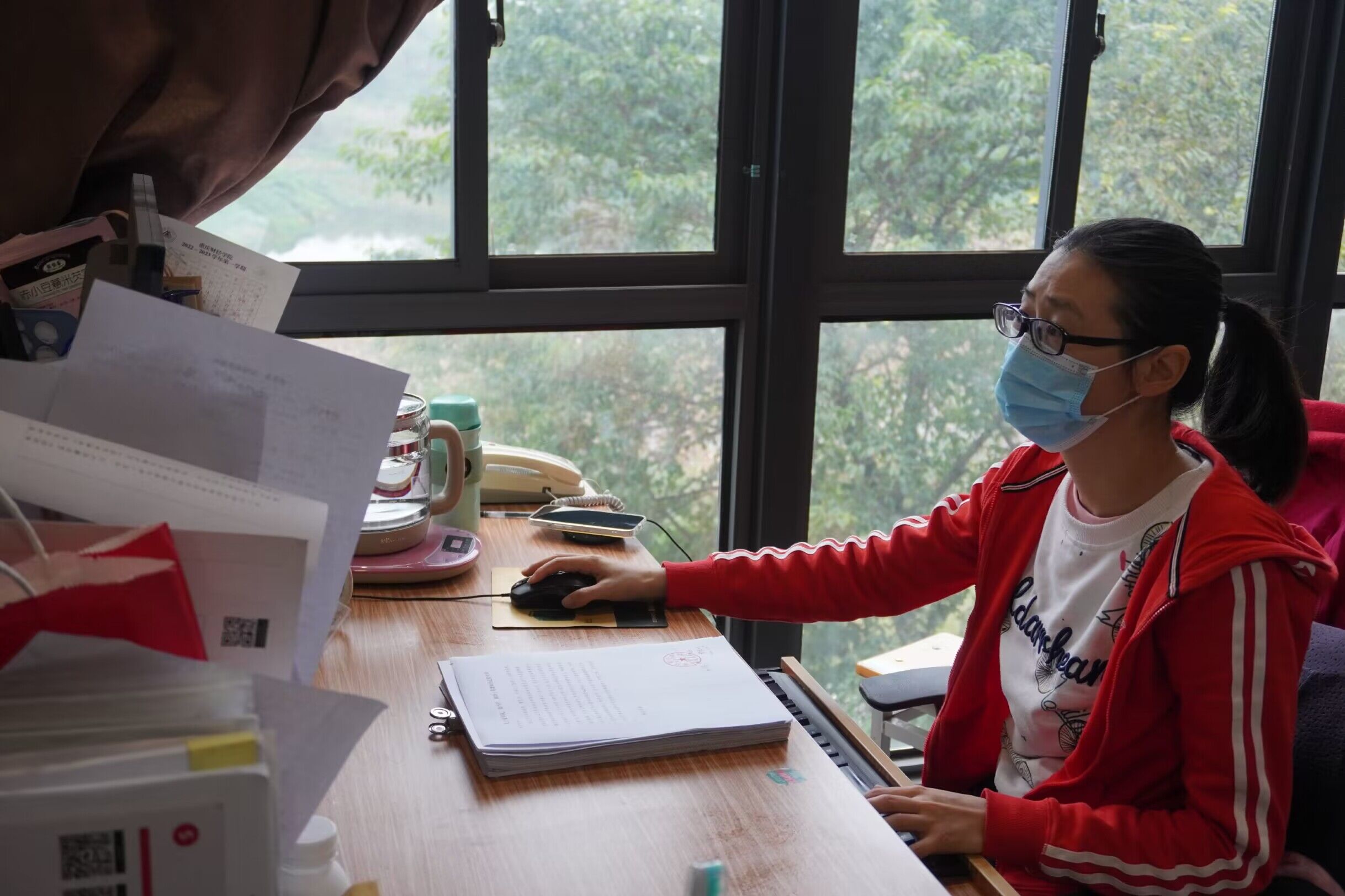 她是一名疫情防控志愿者,同时也是一个四岁孩子的母亲。为全力做好学校疫情防控工作,守护学生的健康与安全。在丈夫出差外地,家中只有自己一人照看孩子的情况下,经过再三思虑,她仍毅然放下四岁的孩子,交托朋友帮忙照看。自疫情爆发以来,连续7日坚守一线,全身心投入到这场没有硝烟的战斗中。在少有且短暂的休息时间里,当谈及孩子时曹老师眼神温暖有光,她说:“是个可爱的小姑娘,今年四岁,很黏我。虽然我的孩子需要我,但为了守护大家生命健康安全,我也必须做一些力所能及的事情,毕竟大家安全了,小家才会更好!”工作与家庭相冲突,曹老师舍小家为大家,践行“不忘初心,牢记使命”的责任,用实际行动保卫着全校学生的身体健康和生命安全。
