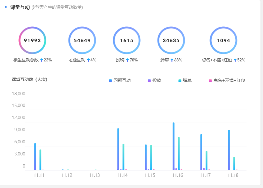 雨课堂平台最近1周教学数据