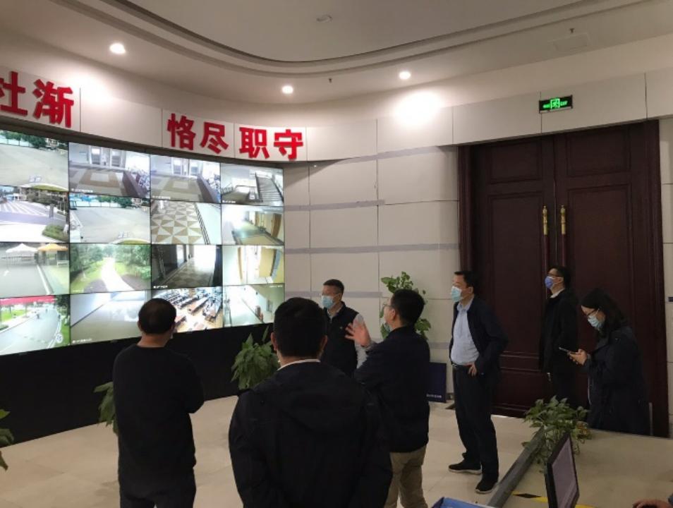 学校疫情防控工作领导小组在监控室研讨流调细节