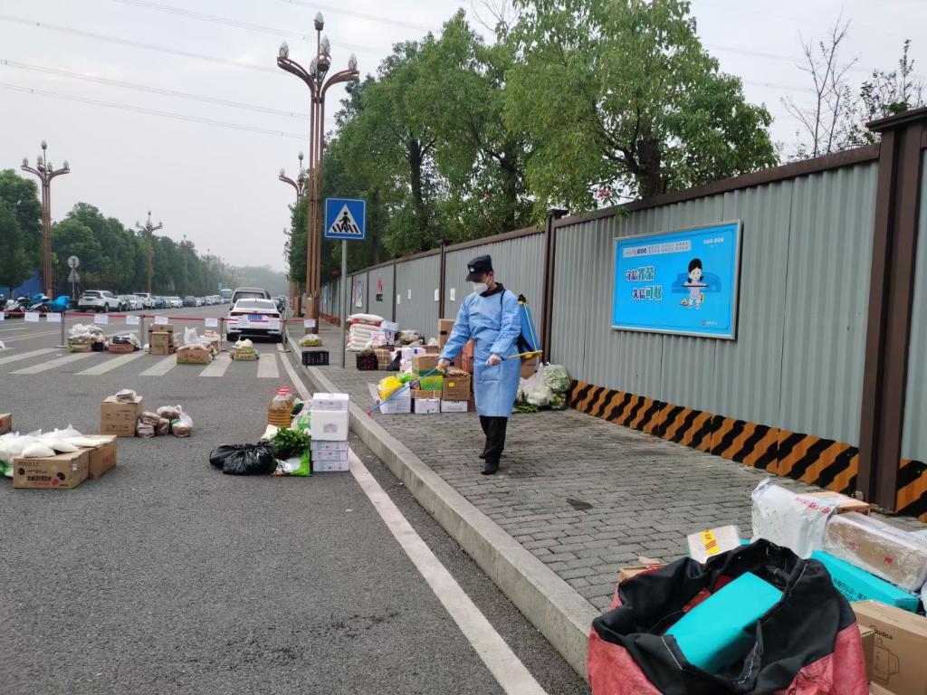 闭环对接,确保管控灵活性。定人员、定地点、定时间、定路线设立分区域物资保供专用通道,制订错峰分区域保障物资对接闭环转运、物资定点定时消杀等应对措施,出两人进两人;禁止外卖人员通过栅栏递送食物,生活必需品消毒后由队员用小推车进行转运,确保人员不交叉、转运不拥堵,队员耐心细致做好解释工作,管理秩序井然。