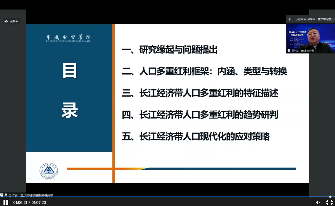 12月3日,我校校长吴华安教授以“中国式现代化目标下长江经济带人口发展的特征、趋势与策略:基于多重红利的视角为题,在第五届长江经济带发展战略论坛发表主题演讲该演讲从人口学视角,提出了长江经济带人口的数量红利、质量红利、配置红利、健康红利、长寿红利和性别红利分析框架,系统阐述了长江经济带人口多重红利的特征描述、趋势研判,从人口学视角提出了长江经济带现代化的应对策略。吴华安教授的演讲以独特的视角、全面地分析,到了与会专家学者的高度肯定