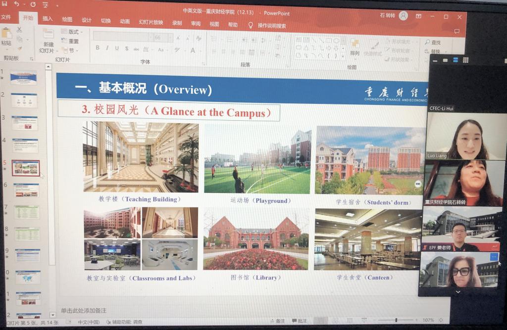 12月13日下午,我校与法国EPF工程师学院举行线上交流洽谈会。法国EPF工程师学院国际处主任Eugenia LLAMAS、法国EPF工程师学院法语语言中心主管、中国项目负责人姜智东,我校国际合作与交流处处长石转转、李慧参加了会议。