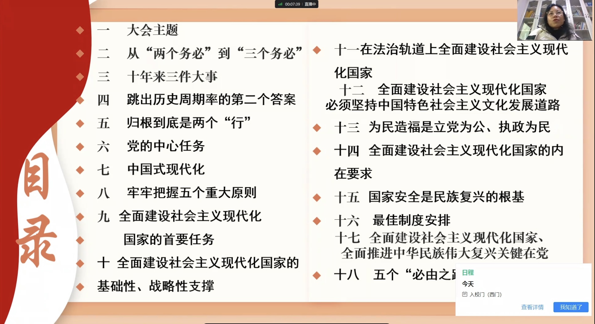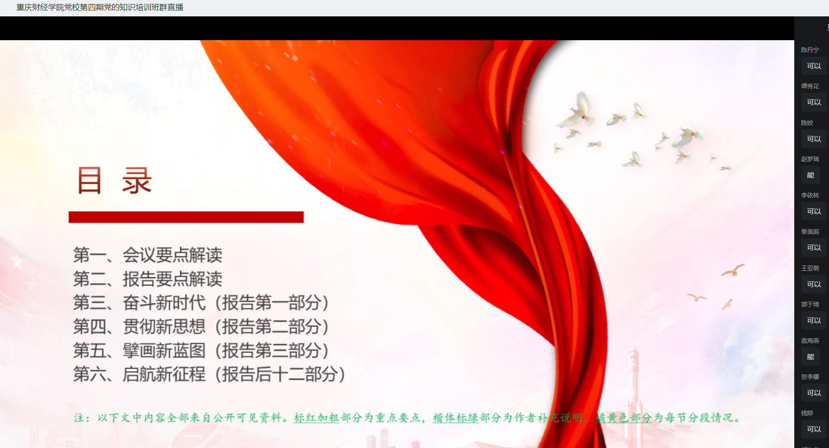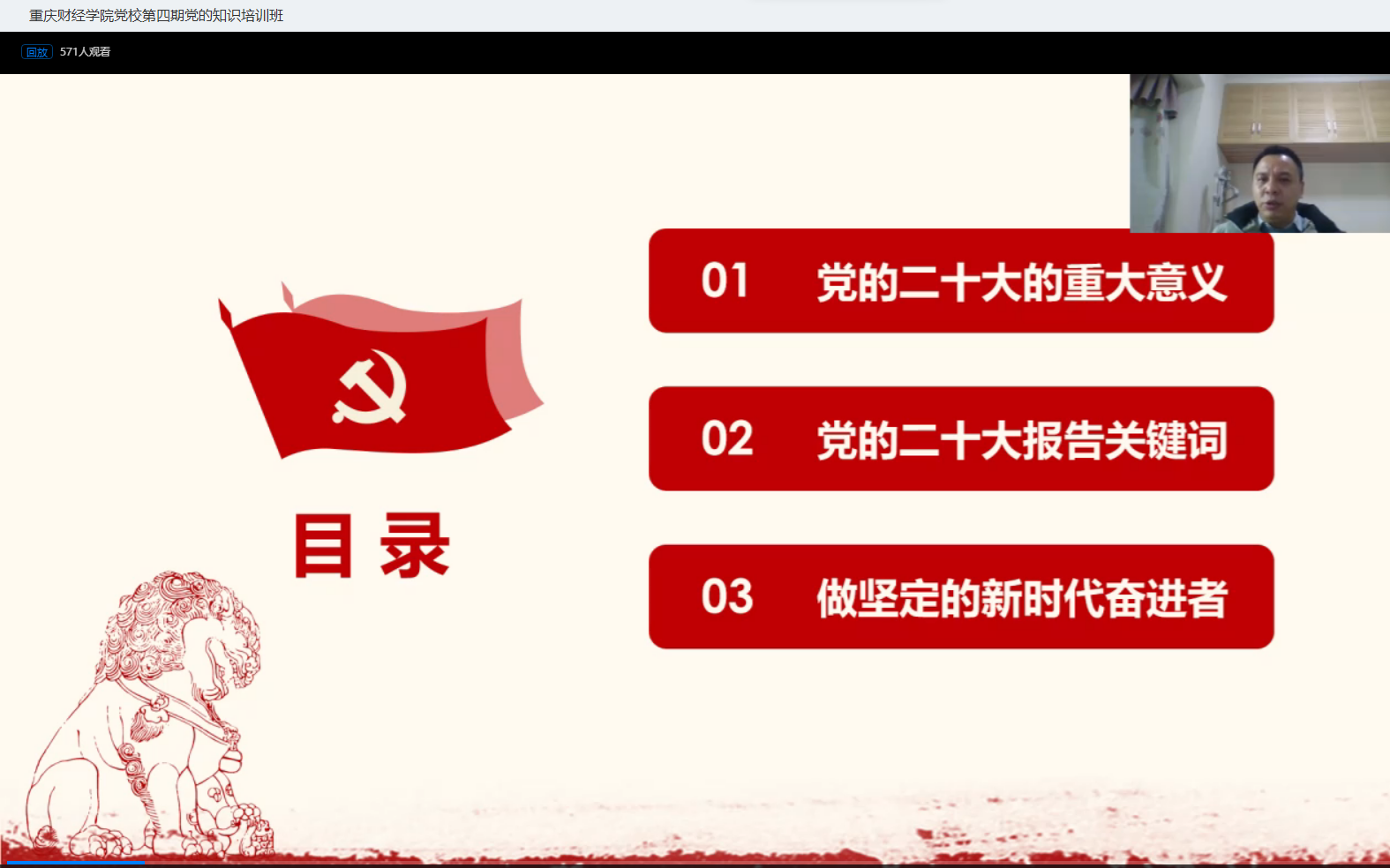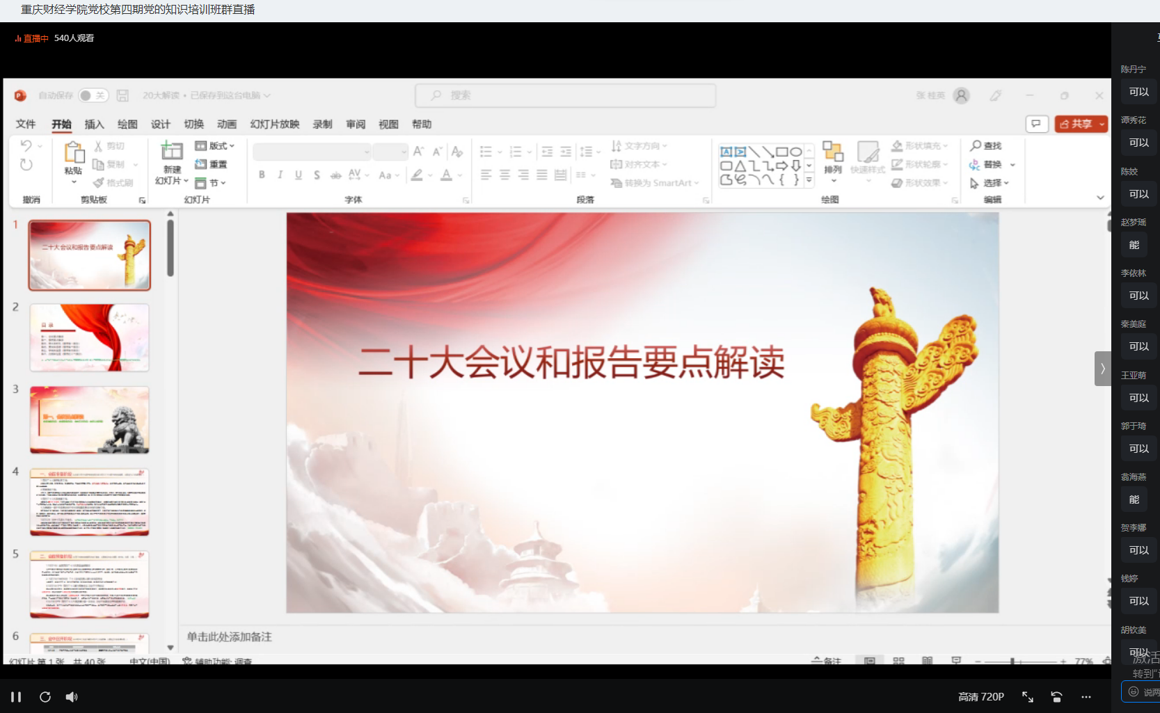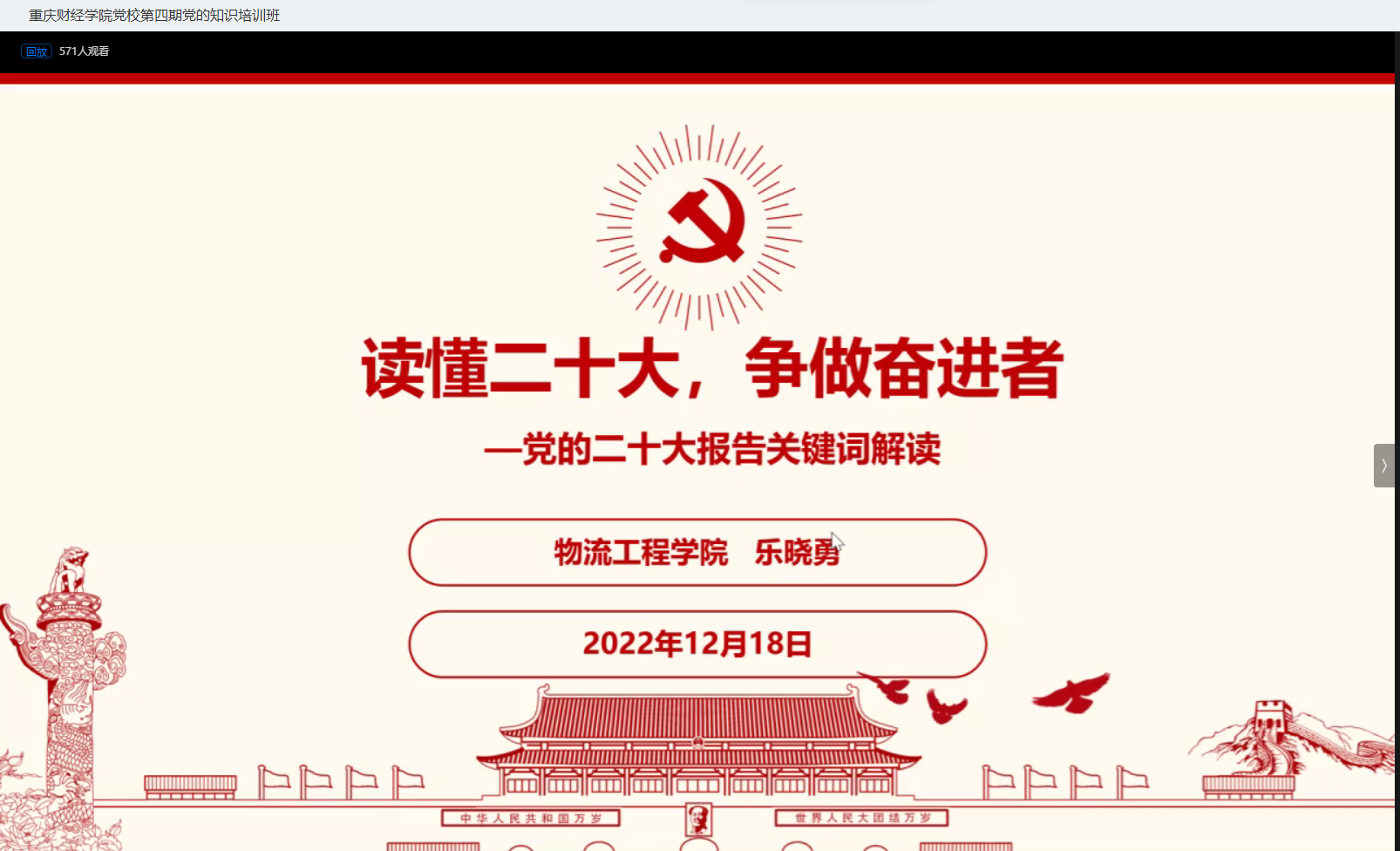 常晓薇以“党的二十大报告中的新观点、新论断、新思想”为主题,围绕党的二十大报告的精髓要义,从大会主题、从“两个务必”到“三个务必”、十年来三件大事等内容向学员们详细地解读了党的二十大报告。