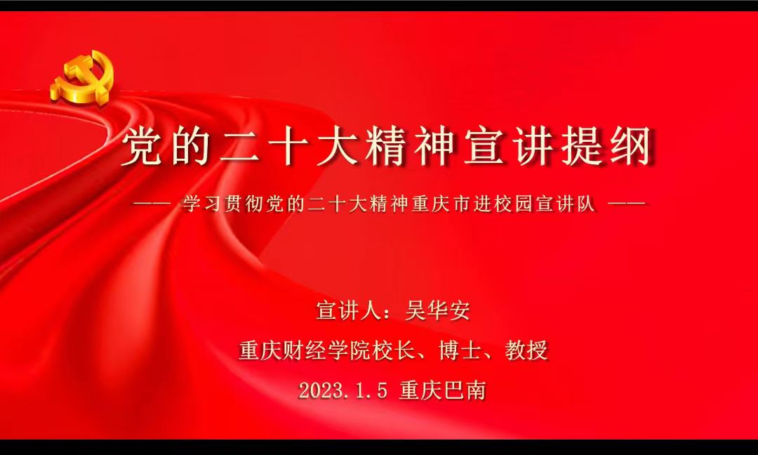 为深入学习贯彻党的二十大精神,2023年1月5日,教辅党支部、金融学院党总支在钉钉会议上组织召开学习贯彻党的二十大精神宣讲会,校长吴华安担任主讲人。教辅党支部、金融学院党总支100余人参加宣讲会。本次宣讲会由罗婷婷书记主持。