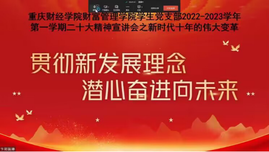 一是坚持党建引领,筑牢思想根基。财富管理学院党总支坚持以习近平新时代中国特色社会主义思想为指导,牢牢掌握党对意识形态工作的领导权,认真贯彻学习党的二十大精神,全面落实意识形态工作责任制,不断深化党的创新理论武装,建设学习型样板支部。我院党总支组织教师党员创新开设精品课堂以更系统、完整地宣讲解读二十大精神、积极组织专业宣讲团在各团支部、班级宣讲二十大精神内容;学生党支部坚持高质量、一体化开展“满怀信心迎盛会,凝心聚力谱新篇”二十大报告研讨会、“高举旗帜坚定不移,伟大目标催人奋进”二十大报告专题学习会、不同主题的二十大精神宣讲会以及多次班级微党课,坚持不断深化拓展成果成效,推动学习二十大精神学习常态化、制度化、长效化。目前共发布二十大精神学习推文19篇,原创微博15篇,转发微博40篇,通过学习宣传,党员进一步明确了方向,强化了履职的责任感和使命感,坚持以一往无前的奋斗姿态和永不懈怠的精神状态,凝神聚力、踔厉前行,助力全国支部样板建设。