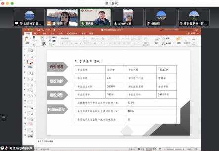 会上,刘贤洲、郭涛敏、李爽三位教研室主任兼专业负责人分别从专业概况、建设目标、建设成效及存在的不足等方面,对会计学、审计学、税收学专业的建设情况逐一进行了汇报。