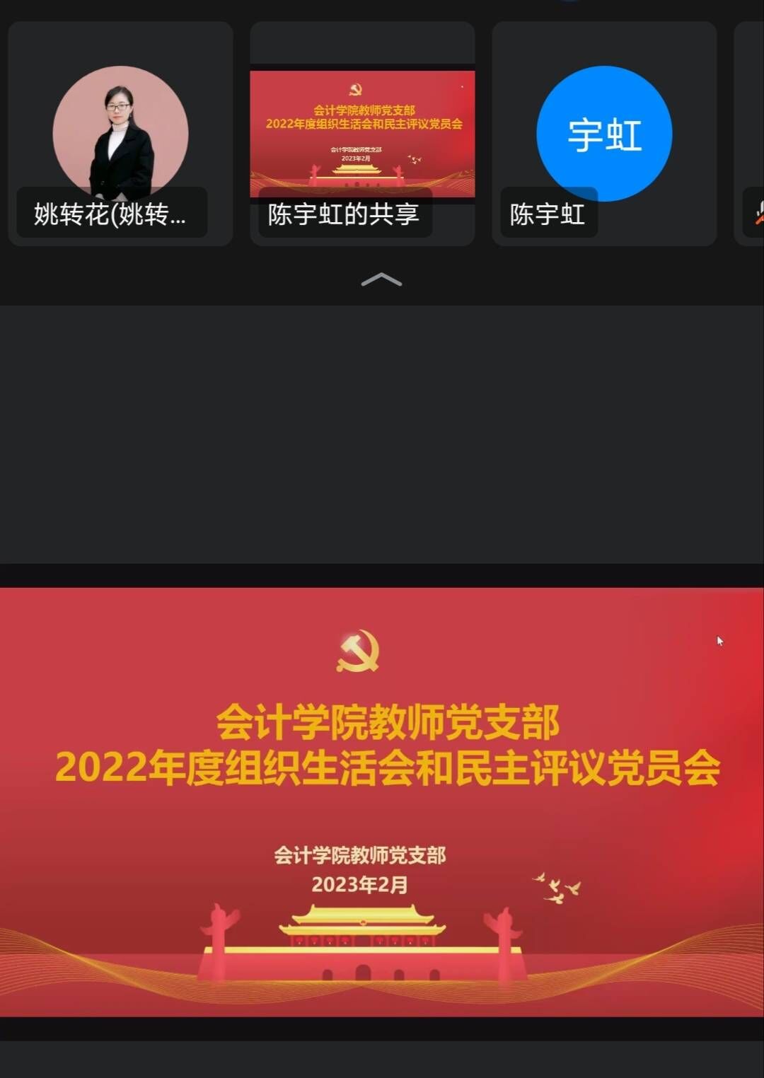 2月23日,会计学院教师党支部在图书馆大研讨室召开2022年度组织生活会,开展民主评议党员。学校党委委员、校长助理崔中山列席会议。会议由教师支部副书记陈宇虹主持。