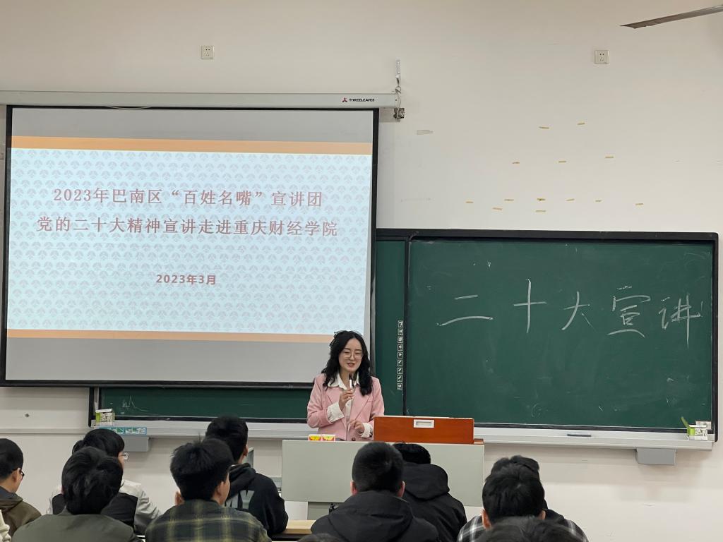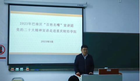 为深入学习贯彻党的二十大精神和习近平新时代中国特色社会主义思想,推动二十大精神进校园进课堂进头脑。3月21日,在巴南区宣传部的指导下,我校开展巴南区“百姓名嘴”进校园微宣讲党的二十大精神。三名宣讲员分别深入我校三个学院为师生代表们带来了别开生面的党的二十大精神微宣讲。