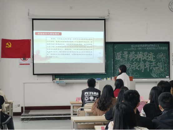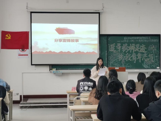“雷锋同志即使经历了不幸的童年,仍然在部队的熔炉中百炼成钢在日常的岗位上默默坚守在生活的点滴中无私奉献,用实际行动诠释一心向着党,向着社会主义,向着共产主义的理想信念学生党员唐雅杰同志在分享雷锋故事环节发言道。