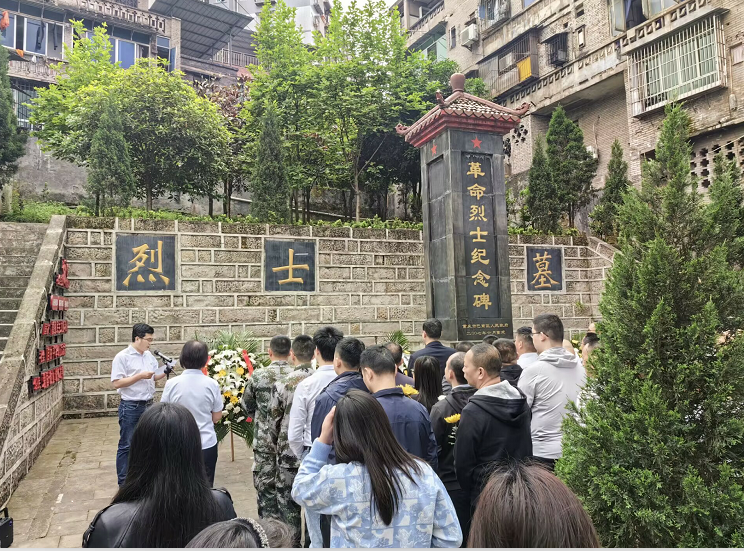 活动中,各代表向烈士纪念碑敬献鲜花,聆听巴南区委党史研究室吴铭主任讲述的先烈解放鱼洞战斗的英勇故事,在鱼洞街道党工委冯天华书记带领下重温入党誓词,我校公共管理学院教师代表范雪林向广大群众发出了烈士公墓环境保护倡议,倡议大家争做烈士公墓环境保护宣传者、践行者。